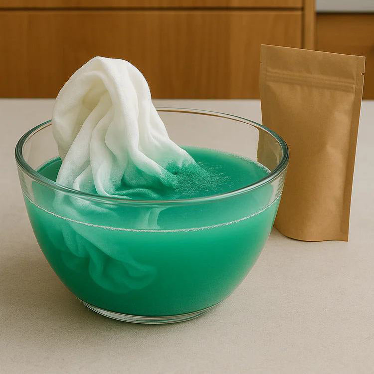 Dilute 100g of Botanical Powder Dye with 10-15 litres of warm water, stir and strain to remove any lumps.